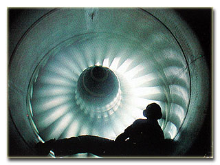 Engine fan service with HMI lighting.to create graphic.. Location shot. |